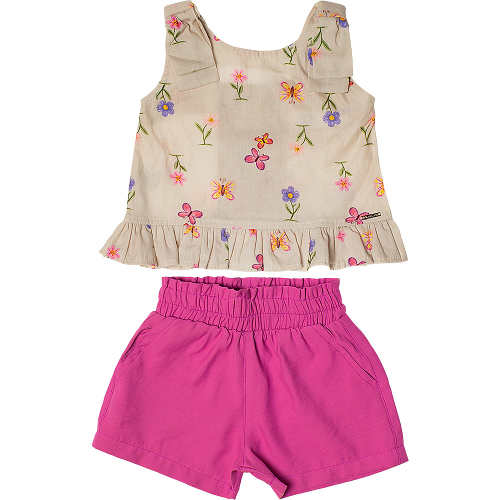 Deixe o look da sua criança ainda mais encantador com este conjunto infantil menina, composto por uma blusa super delicada e shortinho confortável, perfeito para dias quentes e passeios cheios de movimento.
