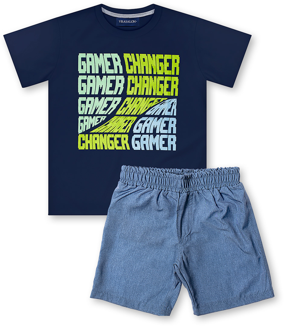 Este conjunto infantil menino é composto por camiseta 100% algodão com estampa moderna “Gamer Changer” e bermuda em tecido sintético leve com bolsos laterais funcionais. O look é ideal para acompanhar as aventuras do dia a dia com muito conforto e estilo.