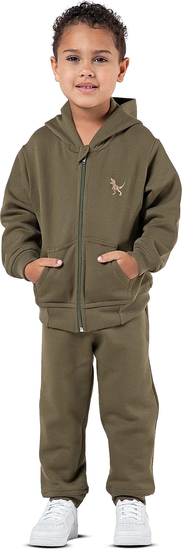 O Conjunto de Moletom Infantil Menino com Capuz e Zíper Dino é ideal para garantir conforto, praticidade e estilo nos dias mais frios. Com design moderno e minimalista, ele é perfeito para compor looks versáteis para o dia a dia.