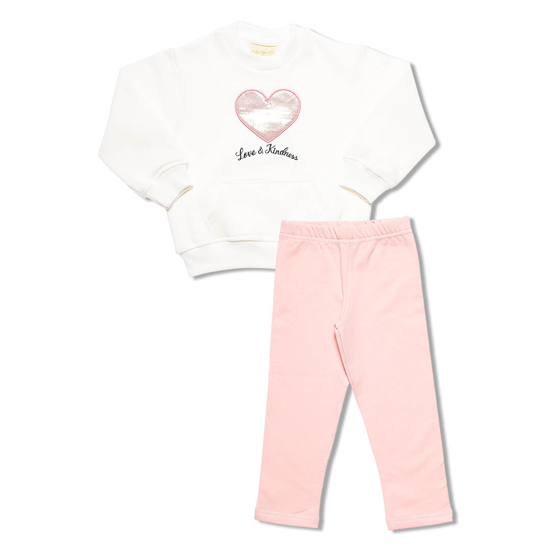 O Conjunto de Moletom Bebê Menina Love & Kindness com Coração é perfeito para deixar sua pequena quentinha, confortável e cheia de charme nos dias mais frios. Com design delicado e feminino, ele é ideal para compor looks fofos e estilosos.