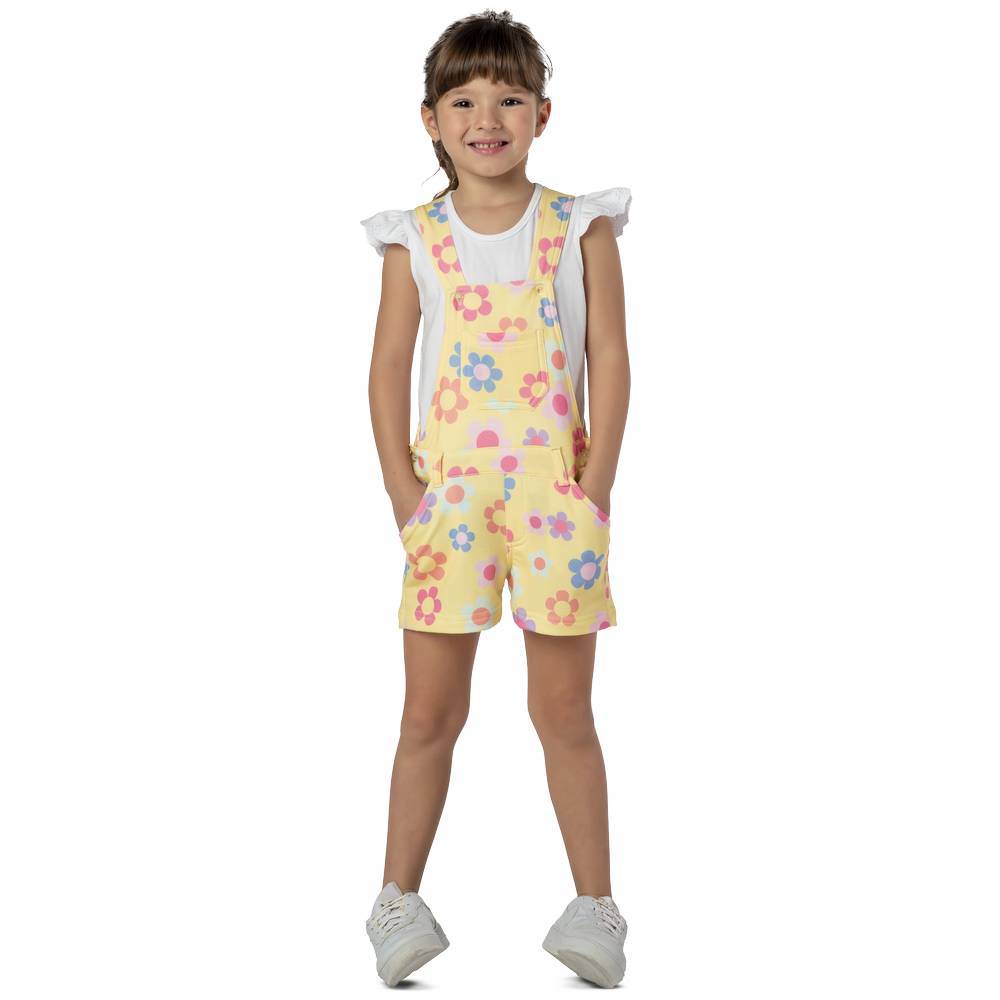 A jardineira infantil para menina é a escolha ideal para um look leve e cheio de charme. Confeccionada em moletinho amarelo super macio, ela garante conforto o dia todo, com um toque suave na pele. A estampa delicada de flores traz um toque de frescor e alegria, perfeita para os dias mais quentes. Os bolsos laterais adicionam funcionalidade e estilo, tornando a peça ainda mais prática para o dia a dia. Uma opção versátil e adorável para compor looks casuais e cheios de graça!