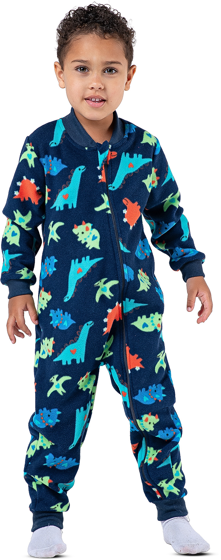 O Pijama Macacão Infantil Menino Soft Dinossauro com Zíper é perfeito para garantir noites quentinhas, confortáveis e cheias de diversão. Com estampa colorida de dinossauros, ele traz um visual lúdico que as crianças adoram.