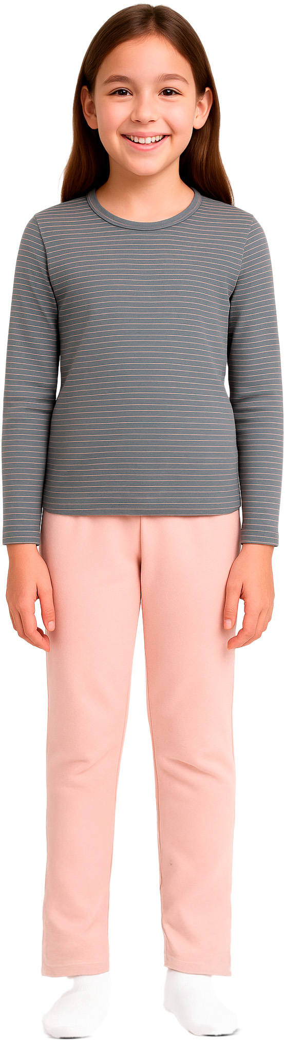 Conforto e fofura para as noites das pequenas! Este pijama infantil feminino é confeccionado em tecido cotton touch, macio e agradável ao toque, ideal para garantir uma noite de sono tranquila. A camiseta tem modelagem fechada, gola careca e estampa listrada nas cores rosa e cinza, trazendo um visual delicado e moderno. Acompanha calça lisa em tom coordenado, com cós elástico que proporciona mais conforto e liberdade nos movimentos. Perfeito para as meninas dormirem quentinhas e estilosas!