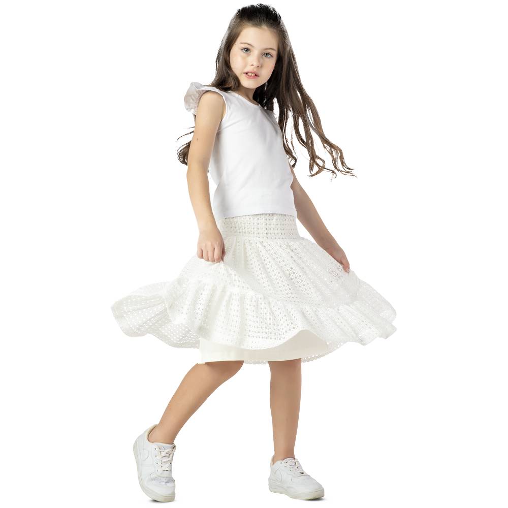 A saia infantil menina, confeccionada em crochê branco, é a escolha ideal para ocasiões especiais ou para deixar o dia a dia das pequenas ainda mais encantador. Com um design delicado e cheio de charme, essa saia na altura do joelho traz um toque de sofisticação, enquanto o crochê proporciona textura e frescor. Sua modelagem versátil com forro por baixo, combina perfeitamente com blusinhas, tops ou camisetas, criando looks leves e estilosos para o verão. Ideal para passeios, festas e eventos, essa saia adiciona um toque de feminilidade e elegância ao guarda-roupa da menina, sem perder o conforto que ela precisa para se divertir.